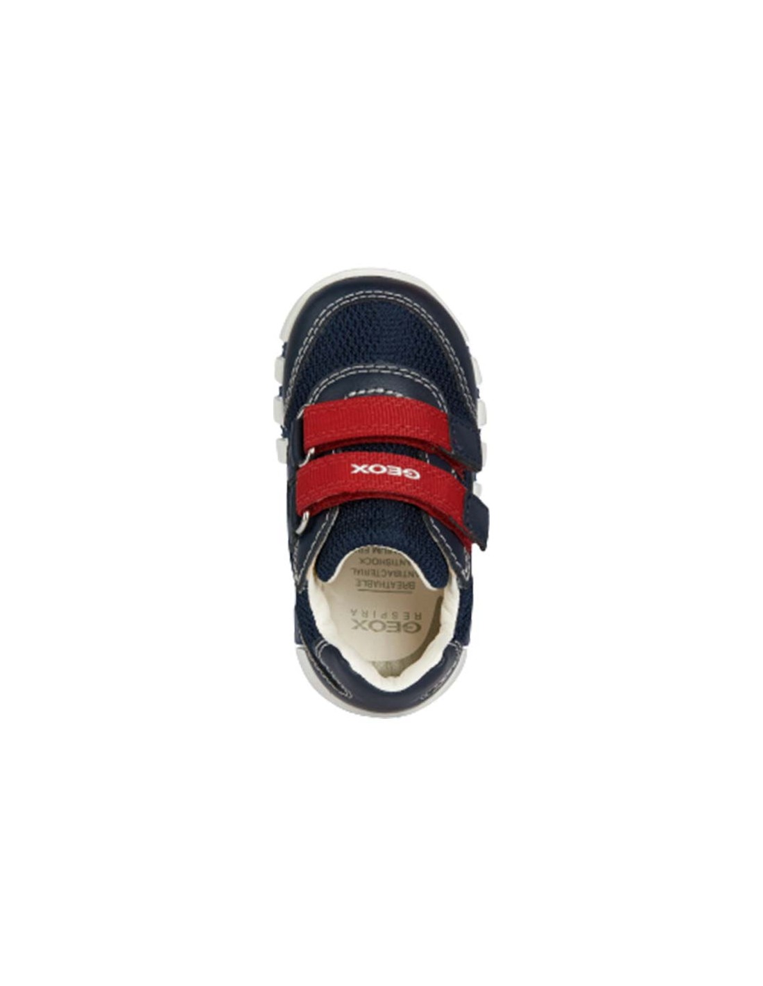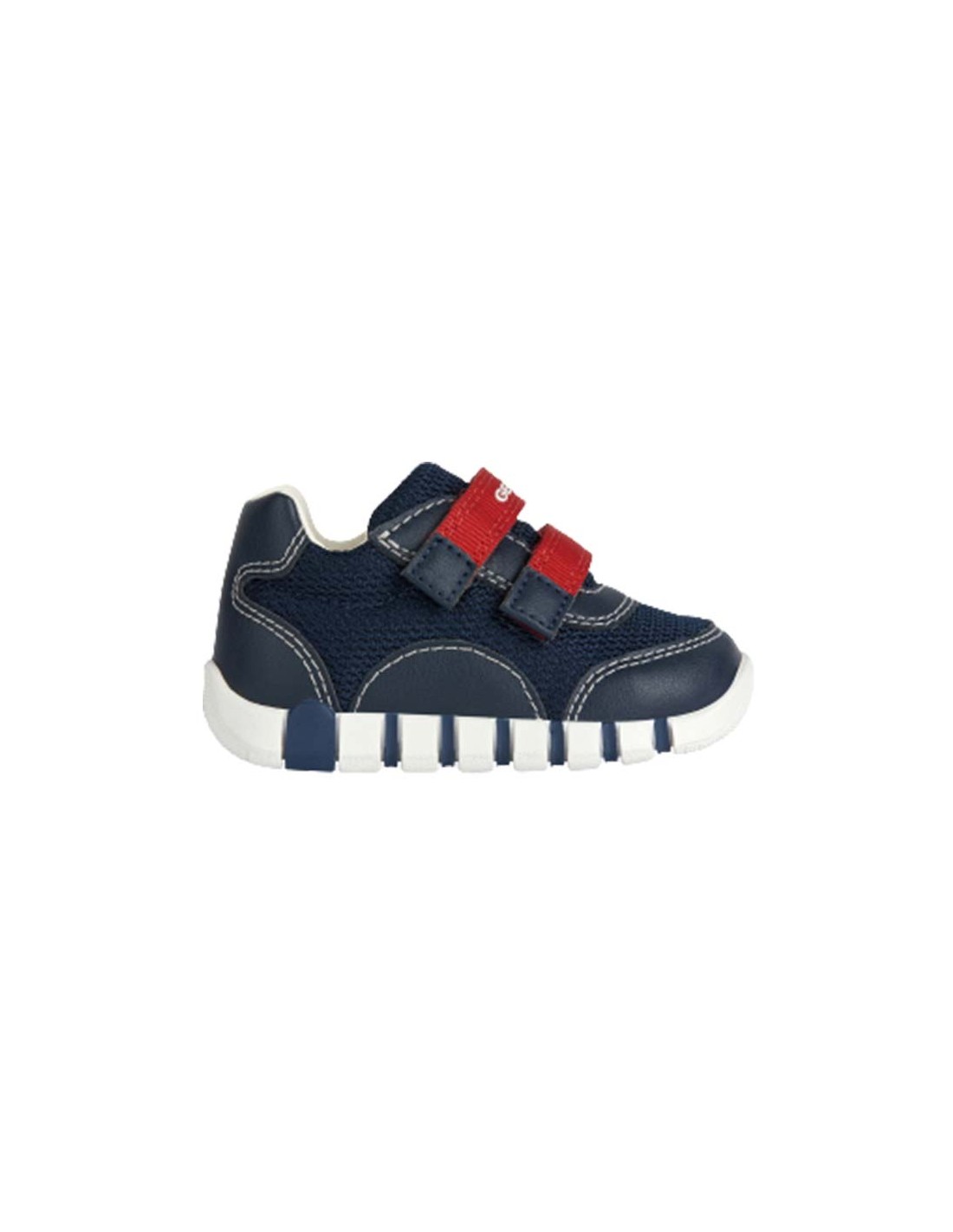 La sneakers primi passi per neonato Iupidoo è flessibile, leggera e dallo stile casual sportivo. Disponibile in una versione blu navy con rifiniture e suola a contrasto, presenta una tomaia morbida in mesh e materiale effetto pelle. Dotata di un pratico doppio strappo, è il modello ideale per accompagnare il tuo bambino nelle sue prime avventure. Le caratteristiche includono la traspirabilità della suola e il benessere del piede grazie ai sistemi brevettati Geox, la flessibilità ottimale garantita dal battistrada con Flexy System integrato e la facilità di indossamento per un comfort superiore. Il rinforzo su punta e tallone protegge da urti e impatti, mentre il supporto alla caviglia assicura il giusto movimento del piede. Il sottopiede è antibatterico e il rivestimento è in pelle atossica chrome-free. La chiusura con strappo rende la calzata facile e immediata, mentre il sottopiede estraibile è igienico e pratico.