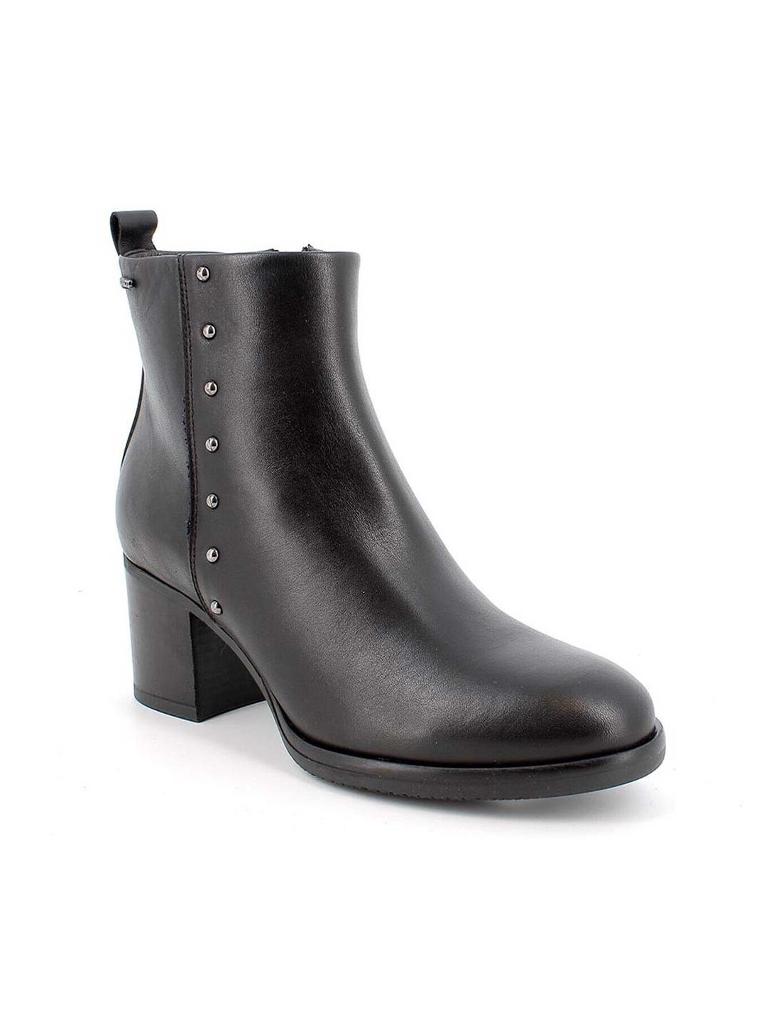 IGI & CO STIVALETTO NAPPA FOULARD NERO IN PELLE CON TACCO DA 5 CM CON CERNIERA E BORCHIETTE LATERALI