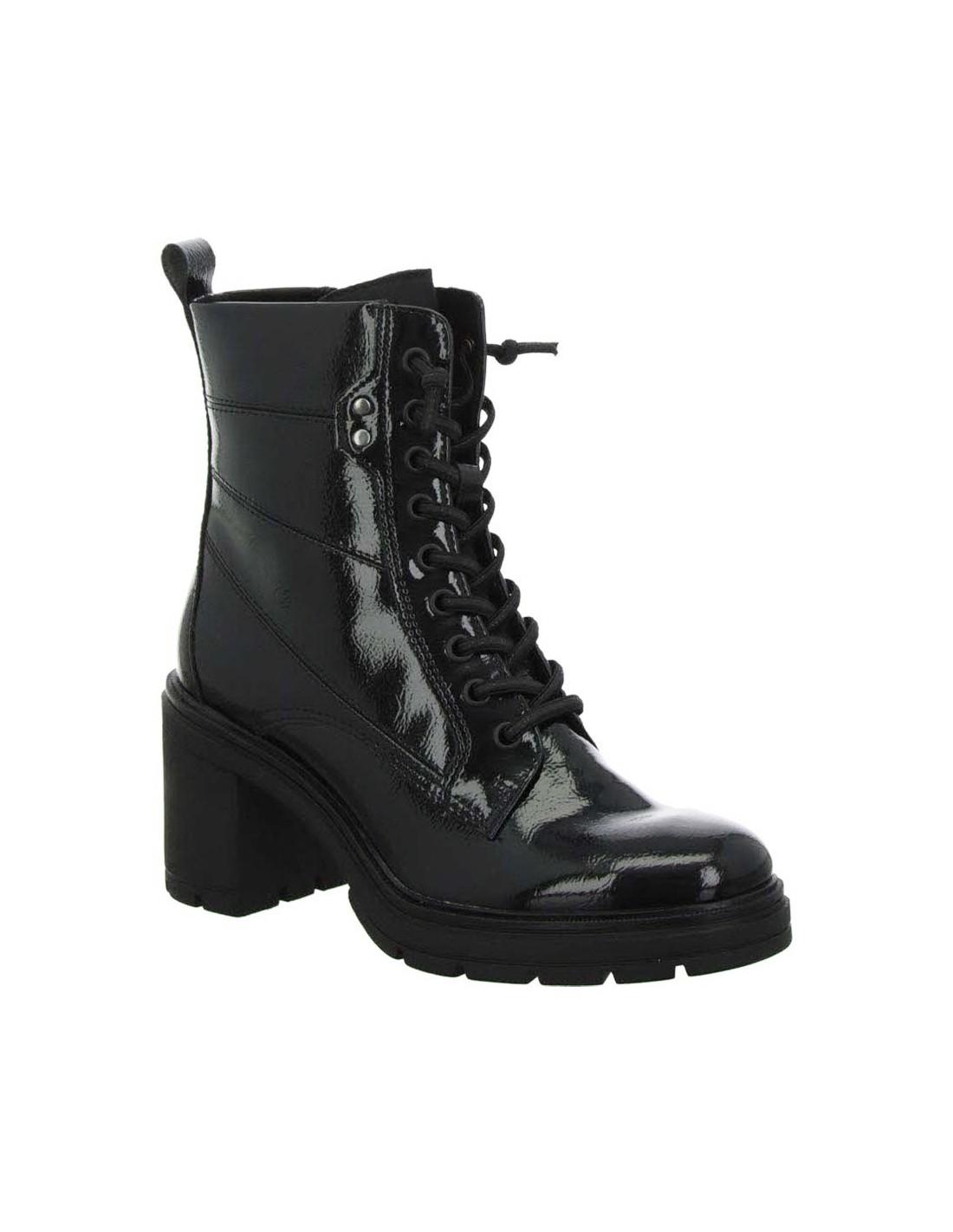 MARCO TOZZI Tronchetto donna con tacco stringato in vernice nera 2-25284-43 018